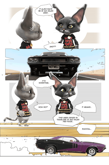 Once the kings of the underground scene (so they think..), the Death Metal Cats—Felix, Rascal, Chloe, Ginger, and Smudge—are now washed-up, out of tune, and out of luck. But when fate throws them one last shot at redemption, these misfit metal heads go all in for the wildest, loudest, most chaotic comeback ever! Battling robo-roadies, surviving feral landscapes, and mosh pits, they’re on a hilarious quest for stardom. Loosely based on true events but cranked to the max, this graphic novel is a laugh-out-loud ride into the heart of heavy metal mayhem!