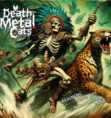 The all-feline band stormed into the studio—only to descend into chaos. Guitarists clawed for attention, drummers fought for tempo, and vocalists yowled for control. As tensions reached a breaking point, their sponsors intervened, demanding a darker, more disciplined tone. Begrudgingly, the band brought in a producer to restore order. The outcome: Reigning from the Scratching Post, a razor-sharp Death Metal album dripping with sinister riffs and thunderous rhythm.